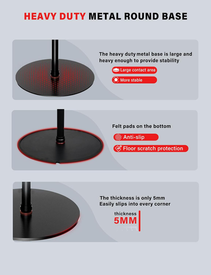 This provides exceptional stability for cameras, lights, and filmmaking equipment without the wide footprint of a traditional stand. The strong base keeps your gear steady while giving you the flexibility to work efficiently around your setup.